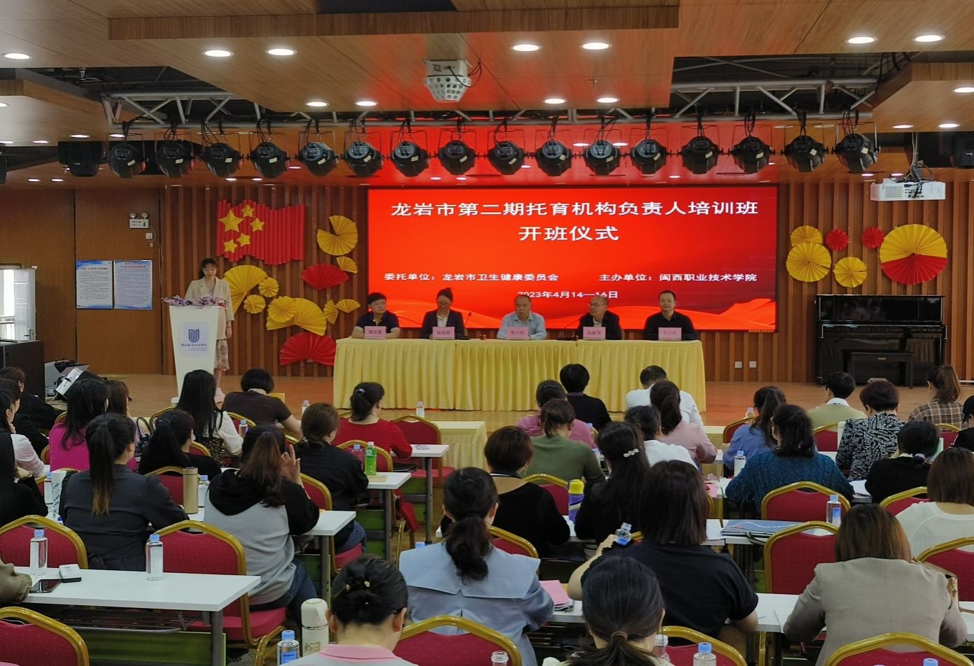闽西职业技术学院受龙岩市卫健委委托承办本次培训,130多名学员分别来自龙岩、三明、莆田三个地市的托育机构以及相关职业院校。开班仪式上龙岩市卫健委副主任易小钧、闽西职业技术学院校领导温献荣分别进行了培训动员发言。本次培训师资队伍有来自福建中医药大学林丽莉教授,也有来自深圳、福州、漳州等地托育行业专家,同时还请龙岩卫健部门相关负责人进行政策解读,此外还特别邀请福建省卫健委人口与家庭处李加华处长为学员进行做现场答疑。