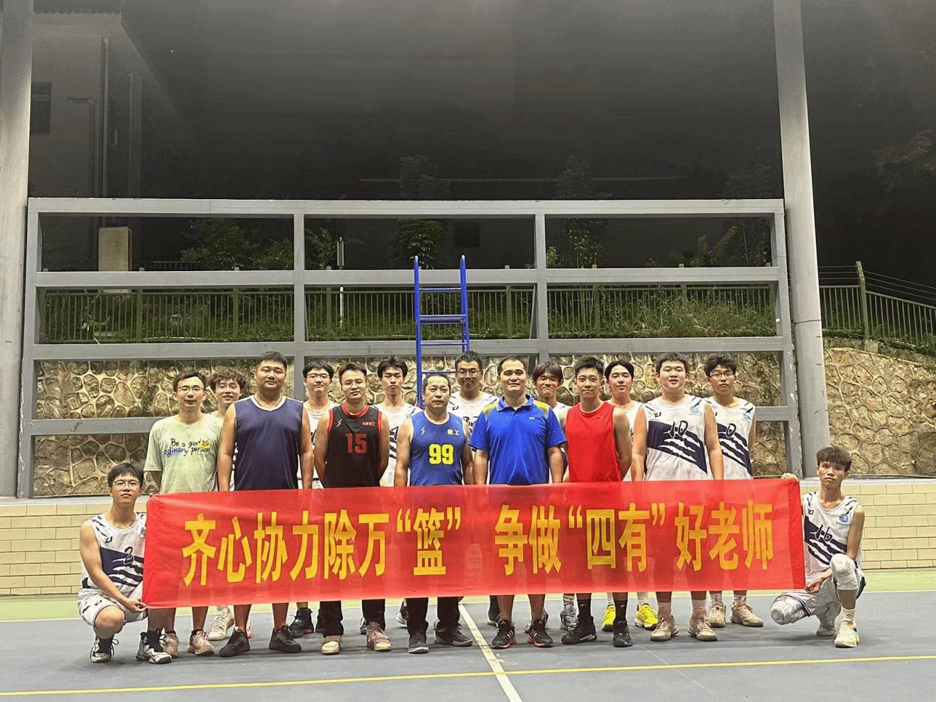 为了增强我院师生之间的沟通与交流,丰富同学们的校园生活,增强团队精神和集体凝聚力。2023年11月7日,教育与艺术学院在槟龙球场举办主题为“齐心协力除万‘篮’,争做‘四有’好老师”的师生篮球交流赛。