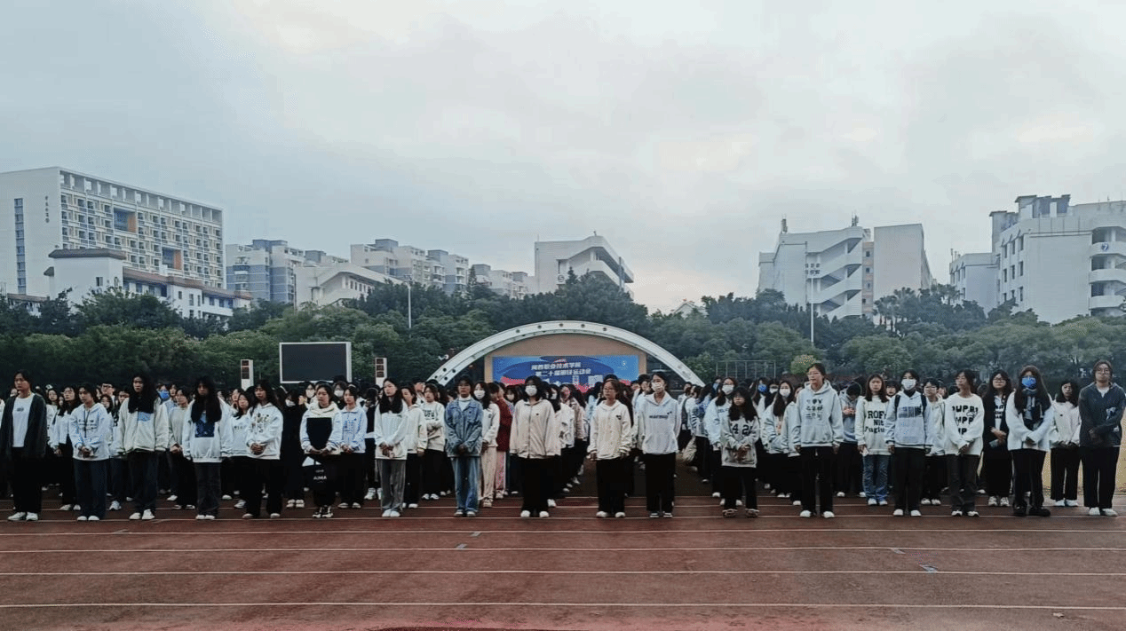 2023年12月12日上午六点四十分,教育与艺术学院在闽西职业技术学院南校区操场上举行升旗仪式。参加本次升旗仪式的有教育与艺术学院团委学生会全体负责人、22级入党积极分子和23级全体学生。