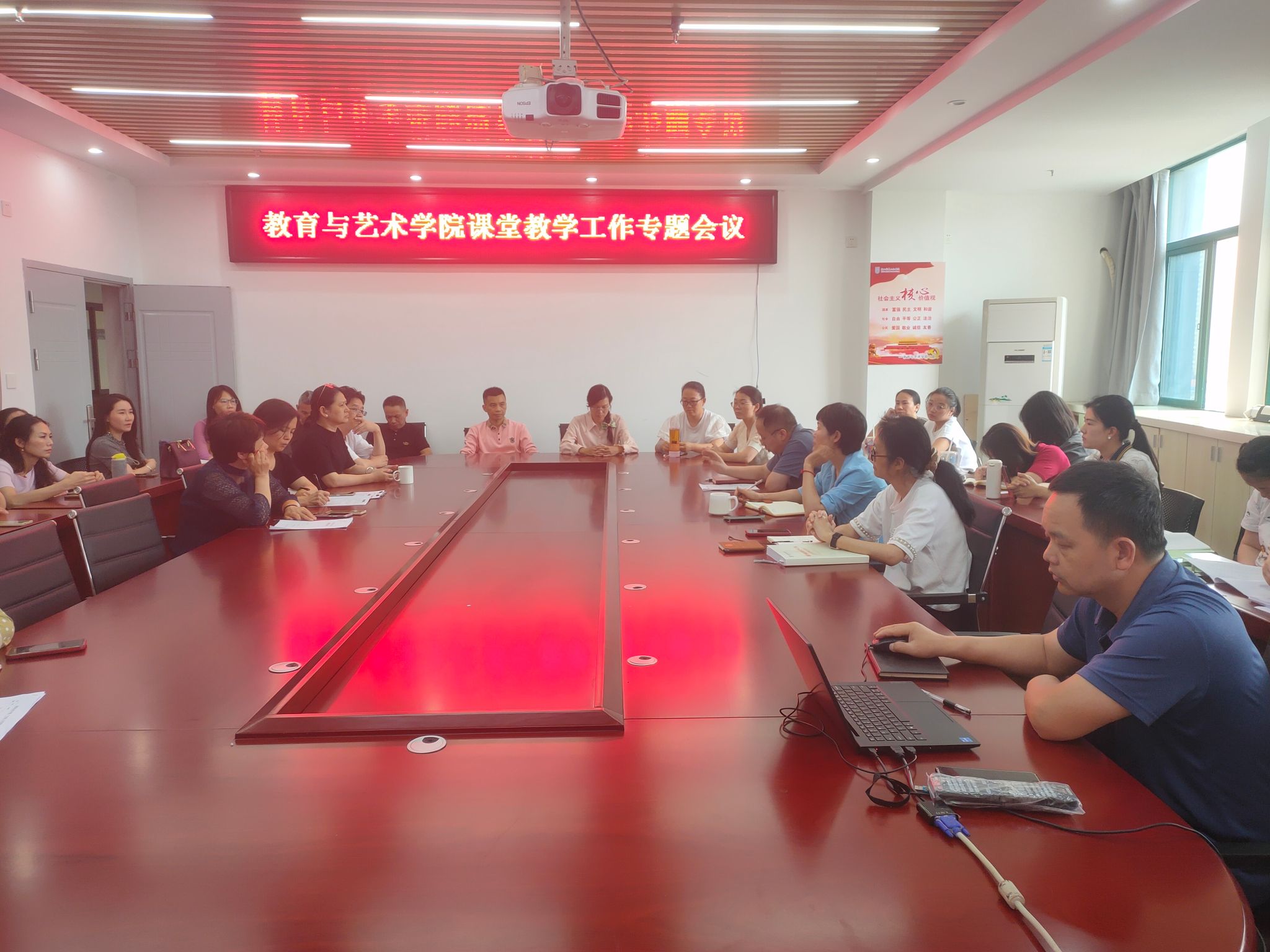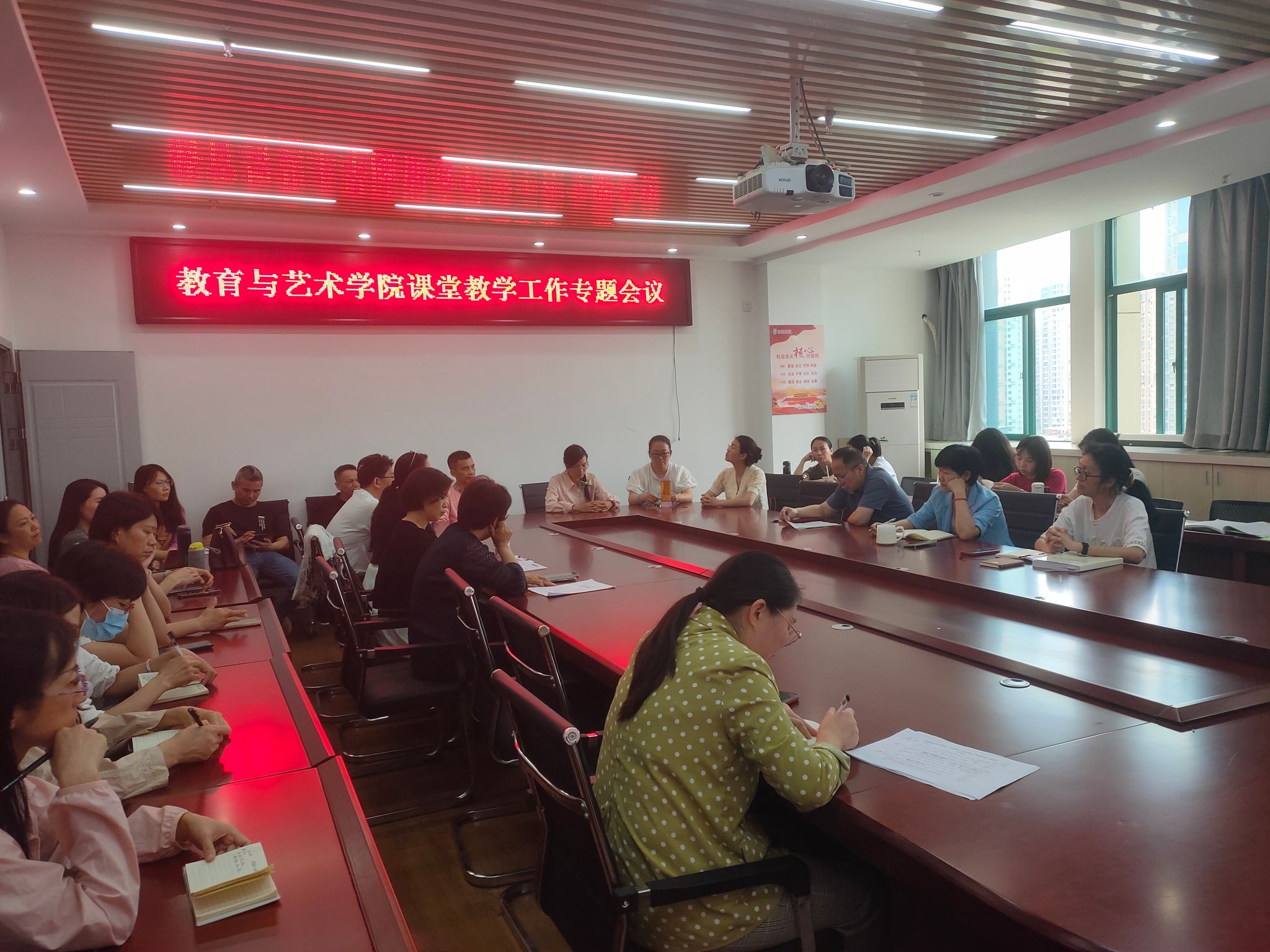2024年5月7日,在岩声楼810会议室召开全院课堂教学工作专题会议,教育与艺术学院全体教师参加。会上李文春院长传达学校关于进一步加强教师课堂教学管理的要求,结合学校近期发生的几起教学事故开展警示教育。张龙专副院长组织全体教师重新学习教学事故处理办法等相关文件,并结合我院课堂教学工作实际提出具体要求。
