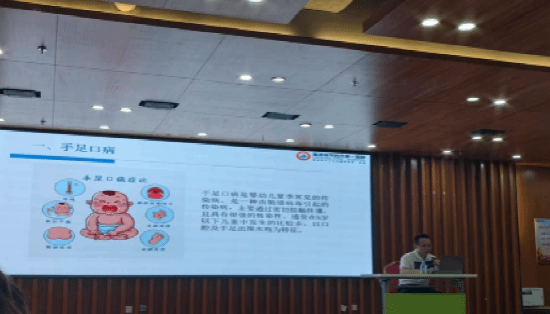 阙医生在儿童保健领域经验丰富。他指出,夏季气温高、湿度大,这样的气候条件使得婴幼儿极易成为各类疾病的易感人群。随后,阙医生生动形象地讲解了感冒、腹泻、痱子、手足口病等婴幼儿夏季常见疾病的症状、发病机制及传播途径。