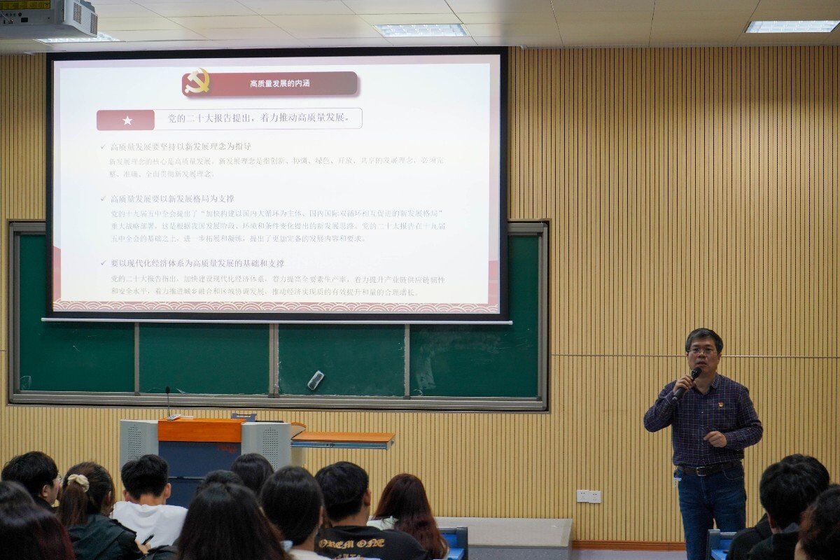 2022年,党的二十大胜利召开,吹响了奋进新征程的时代号角。党的二十大报告提出,高质量发展是全面建设社会主义现代化国家的首要任务。2023年3月23日,软件工程学院特邀闽西职业技术学院宣讲团成员、《新时代龙岩数字经济发展路径优化探析》课题组长、《龙岩市新材料产业专利导航服务基地建设研究》课题组长张松梅老师开展《高质量发展是全面建设社会主义现代化国家的首要任务——认真学习贯彻宣传党的二十大精神》主题宣讲,软件工程学院入党积极分子、团委学生会成员、学生代表聆听宣讲。