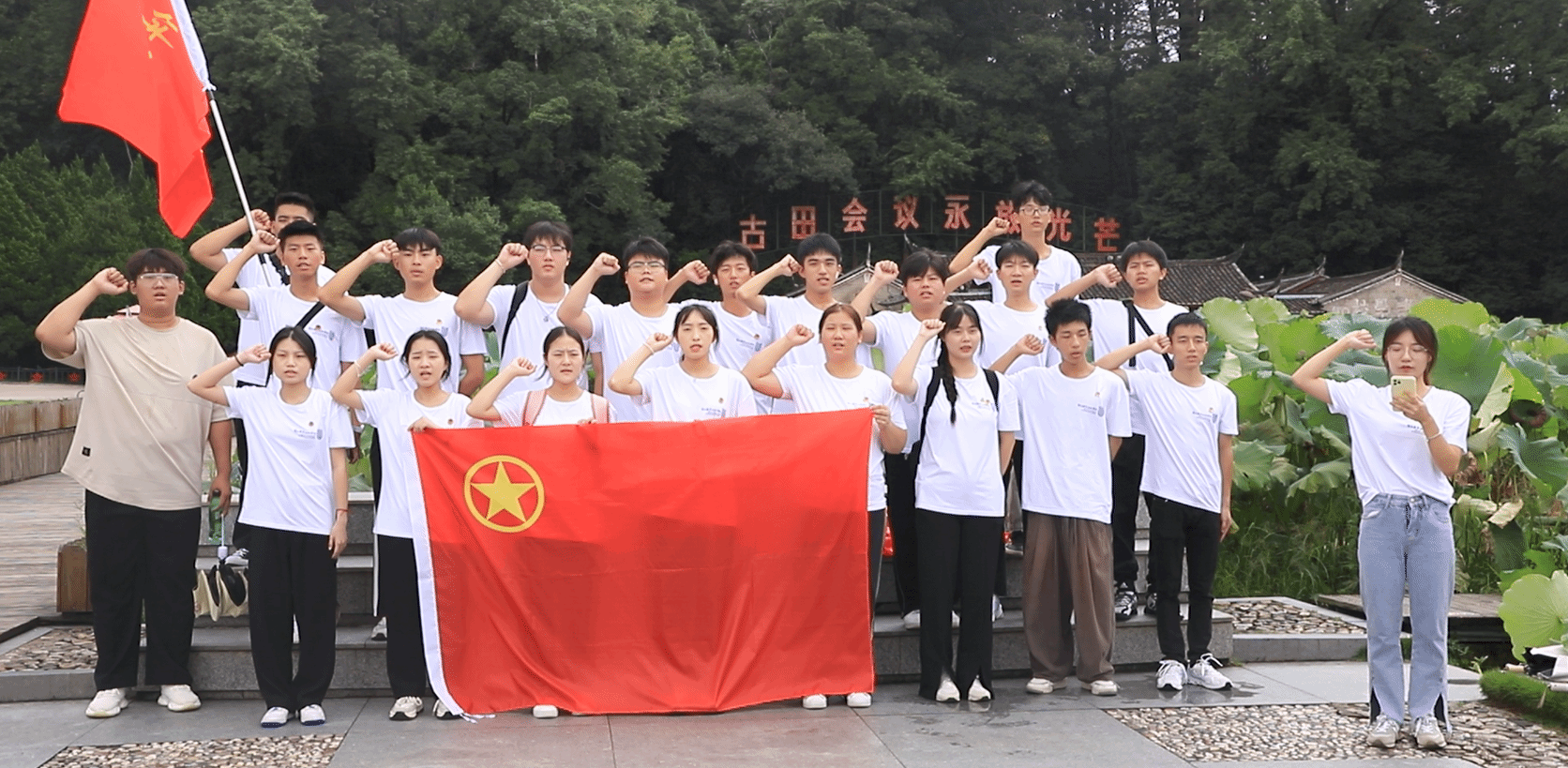 师生们先后参观了古田会议会址、主席园、古田会议纪念馆、树槐堂、鸿玉堂、主席洞等,深入学习古田会议“思想建党,政治建军”的核心内涵,深刻感悟“星星之火,可以燎原”的思想伟力。在古田会议会址前,团员们重温入团誓词,并纷纷表示要坚定跟党走,建功新时代。