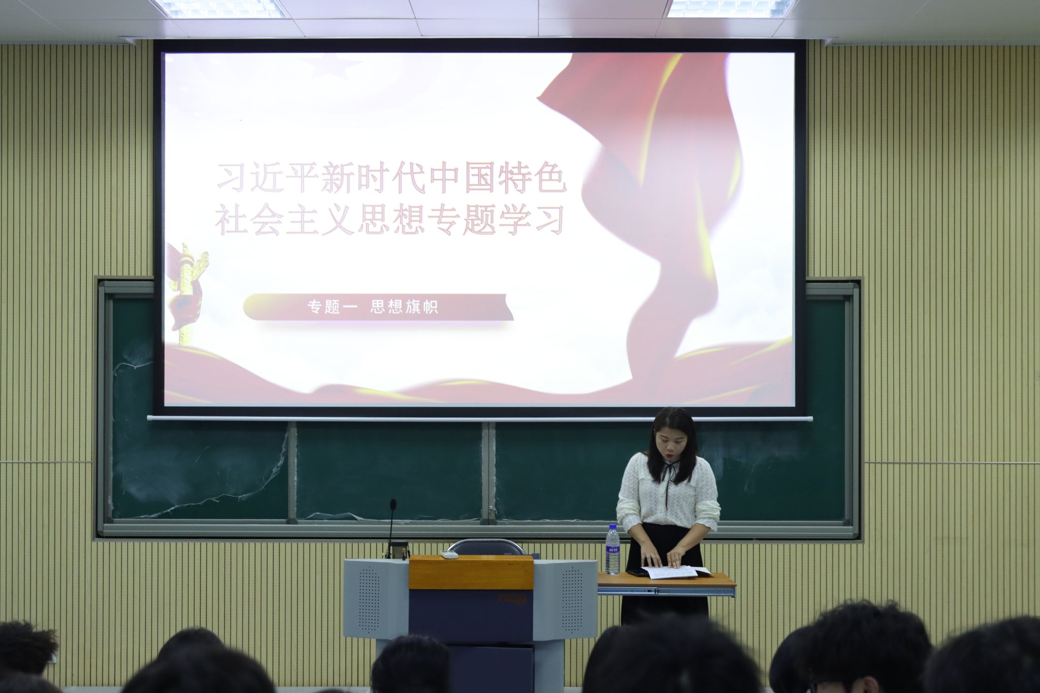 为进一步引领广大共青团员及青年群众主动深入学习贯彻习近平新时代中国特色社会主义思想,不断增进对党的创新理论的政治认同、思想认同、理论认同、情感认同,10月31日晚20:00,闽西职业技术学院软件工程学院学生会功能型团支部于望云楼阶梯教室二召开“思想旗帜”专题学习活动。专题学习由软件工程学院团委书记李丽梅老师主持,支部成员共48人参加。