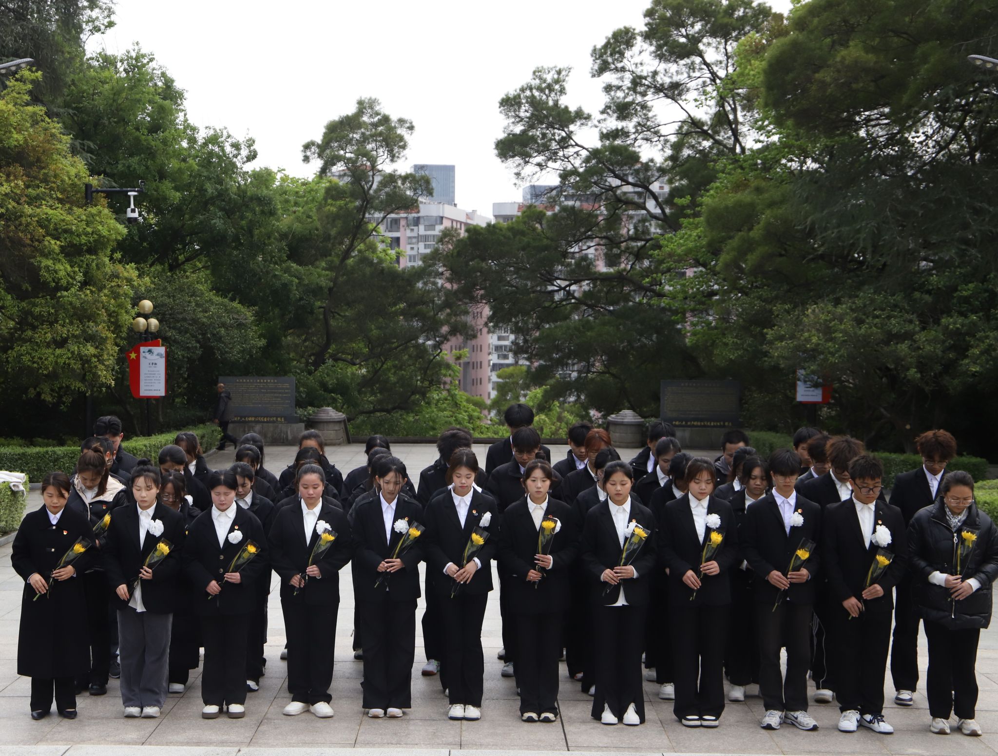 在庄严肃穆的烈士陵园中,师生们齐唱国歌、集体默哀,并向革命烈士敬献鲜花,表达对先烈的深切缅怀。少数民族学生代表丁杨悦在发言中号召大家铸牢中华民族共同体意识,像石榴籽一样团结奋斗。团委书记李丽梅老师勉励全体团员赓续红色血脉,不负时代与人民。