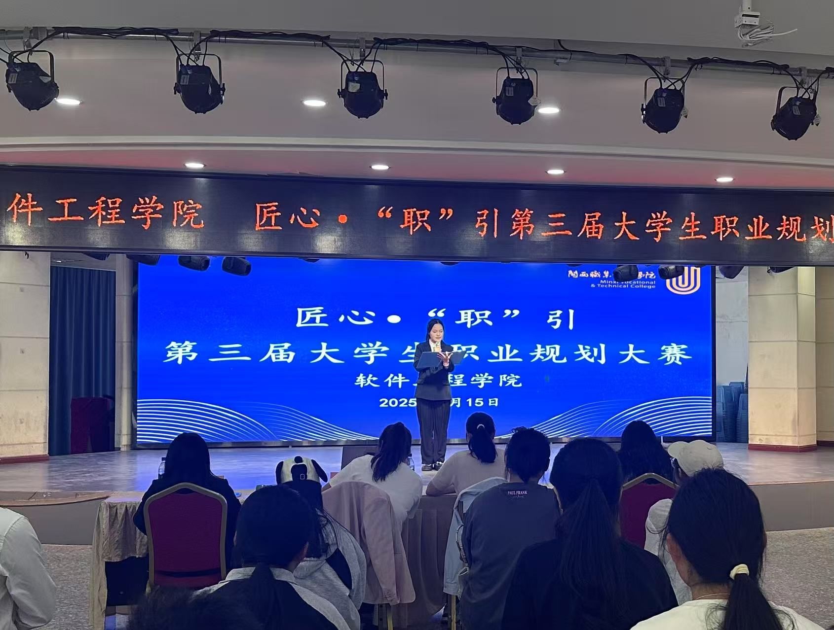 为深入推进共青团“大学生就业引航”计划,助力团员青年精准定位自我、明确职业方向,4月15日,软件工程学院团委在数字化艺术中心举办了“匠心·职引”第三届大学生职业规划大赛。
