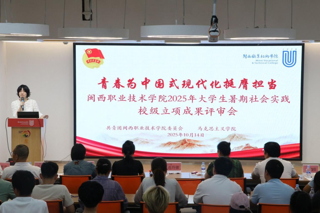 10月14日,我校“青春为中国式现代化挺膺担当”2025年大学生暑期社会实践校级立项成果评审会在万源楼三楼双创孵化基地路演厅举行。副校长连玲娜出席,校团委负责人、各学院党委副书记出席并担任评委,各二级学院团委负责人及学生代表共90余人参加评审会。