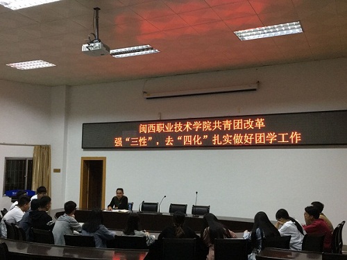 2018年11月14日下午,我校团委在办公楼二楼会议室召开共青团改革内部部署会。校团委书记林小勇主持会议并主讲,校团委所有组织的主席团成员参加。