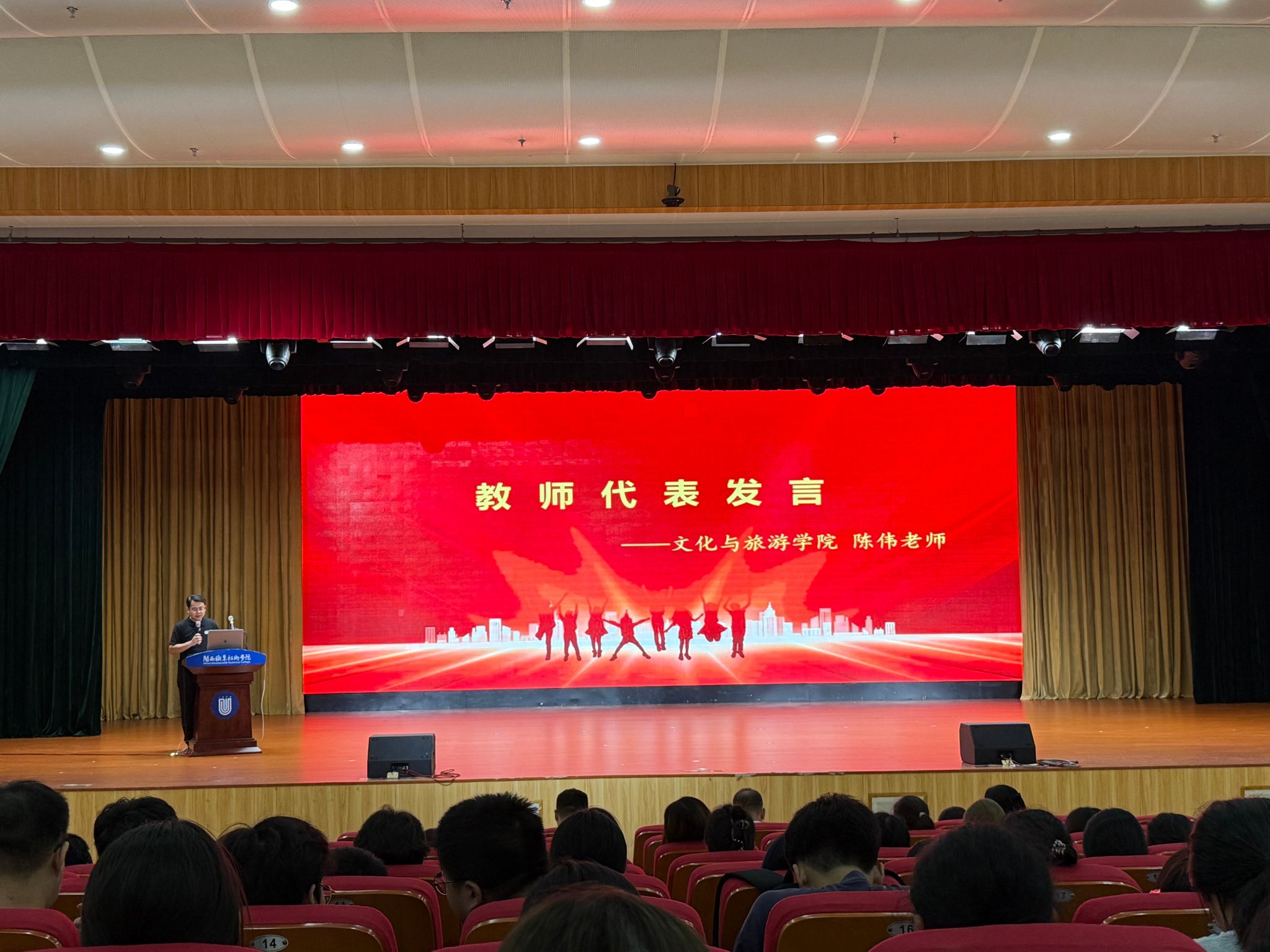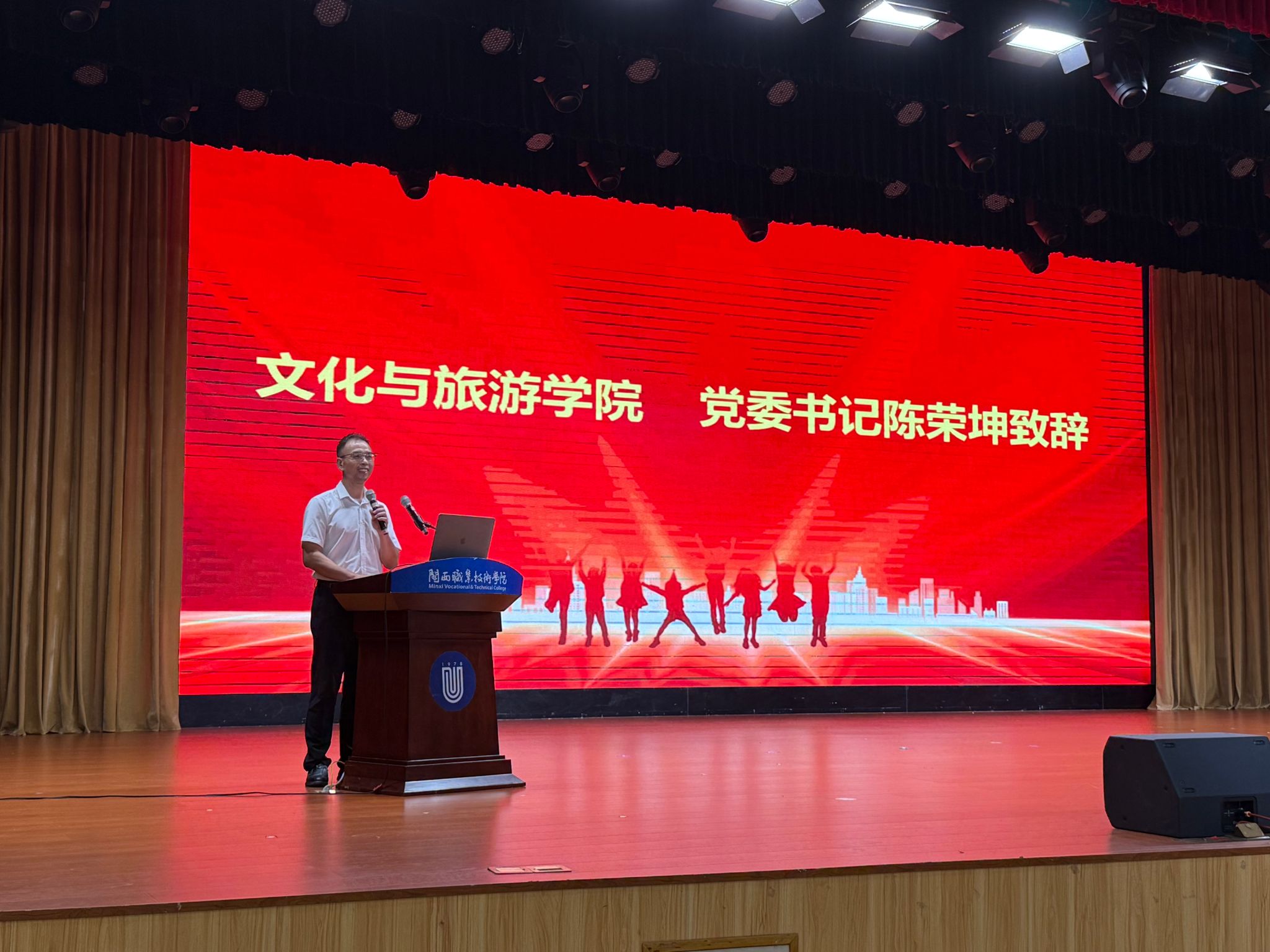 随后,文化与旅游学院党委书记陈荣坤致辞,对新同学的加入表示热烈欢迎,同时勉励大家把握校园时光,勤奋钻研,锐意进取,为未来成长为行业骨干力量筑牢根基!