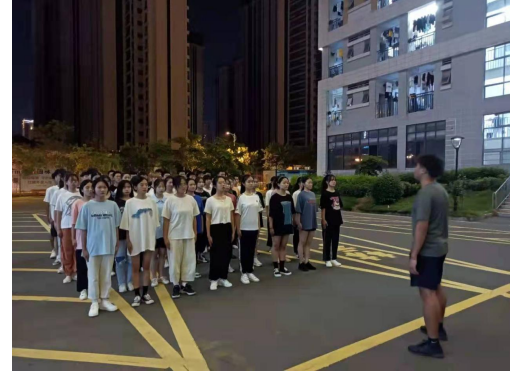 2021年9月29日晚上7点30分,文化与旅游学院于学生宿舍团结里13栋楼下空地举行了运动会方阵训练活动。