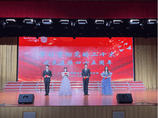 11月28日,文化与旅游学院在大匠堂举办“学习贯彻党的二十大·欢庆建校四十五周年”歌咏活动。闽西职业技术学院副校长刘路永,校团委、学生工作处等部门负责人,以及文化与旅游学院全体教师出席了本次活动。