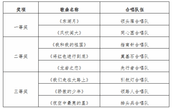 经过一个多月精心排练,文旅学院2023级各班级组成的八支合唱队先后登台演绎,精彩纷呈。期间2022级学生表演的闽西非遗走秀、2022级邱堂智同学独唱的歌曲《起风了》、文旅学院党委郭夏阳副书记的配乐诗朗诵《青春中国》也着实让广大师生大开眼界,留下了深刻印象。经过激烈的角逐和老师们现场评分,八支队伍歌咏比赛结果如下: