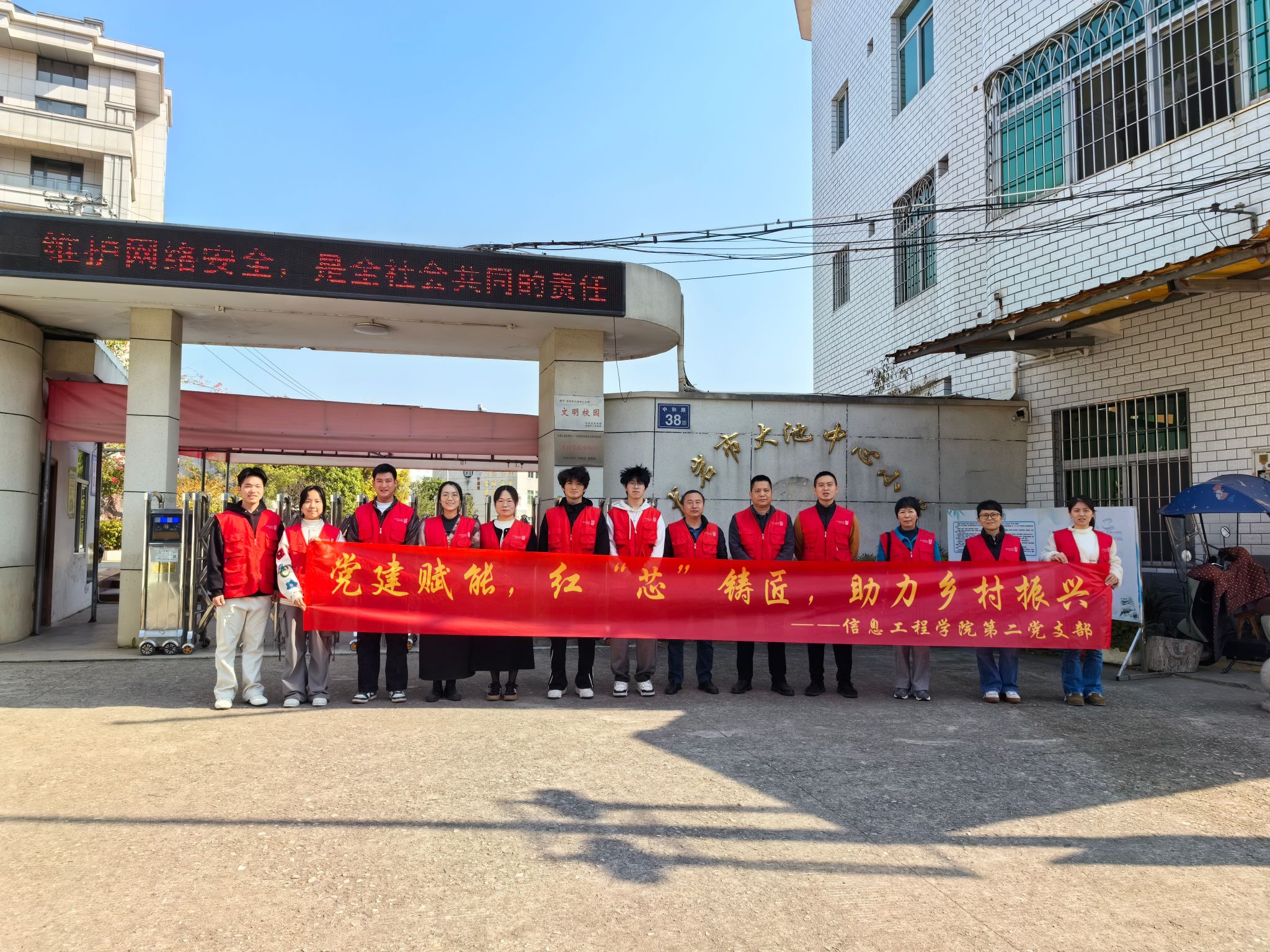 为深入贯彻落实乡村振兴战略,发挥党建引领作用与高校专业优势,近日,信息工程学院第二党支部组织党员教师、学生走进龙岩市大池中心小学与培斜村,开展“党建赋能,红‘芯’铸匠,助力乡村振兴”主题实践活动。