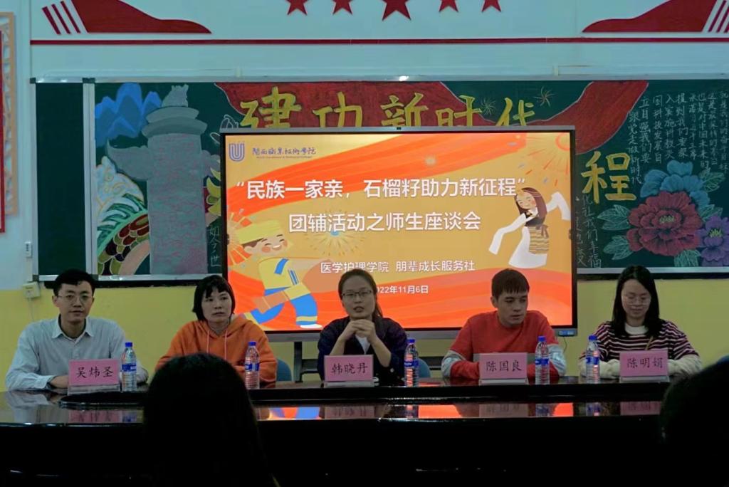 医护学院长期关心关爱少数民族学生成长成才,积极探索民族团结进步教育的理念方法。“石榴籽”训导师工作室将围绕新形势下学生工作的重点、难点、热点问题,坚持践行一线原则,着力指导帮助学生解决学习、生活、就业、心理等急难愁困问题。讲好民族团结医护故事,争做民族团结进步的践行者。进一步提升医护学院训导师工作的专业化、科学化水平。