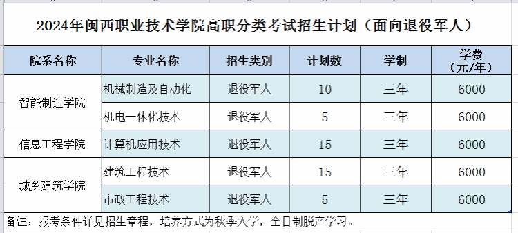 2024年闽西职业技术学院高职分类考试招生计划表